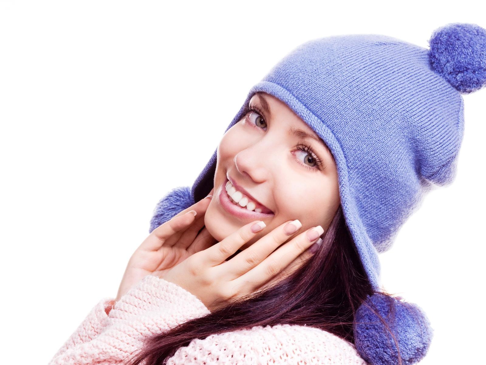 Wallpaper Beautiful smiling girl in a purple hat