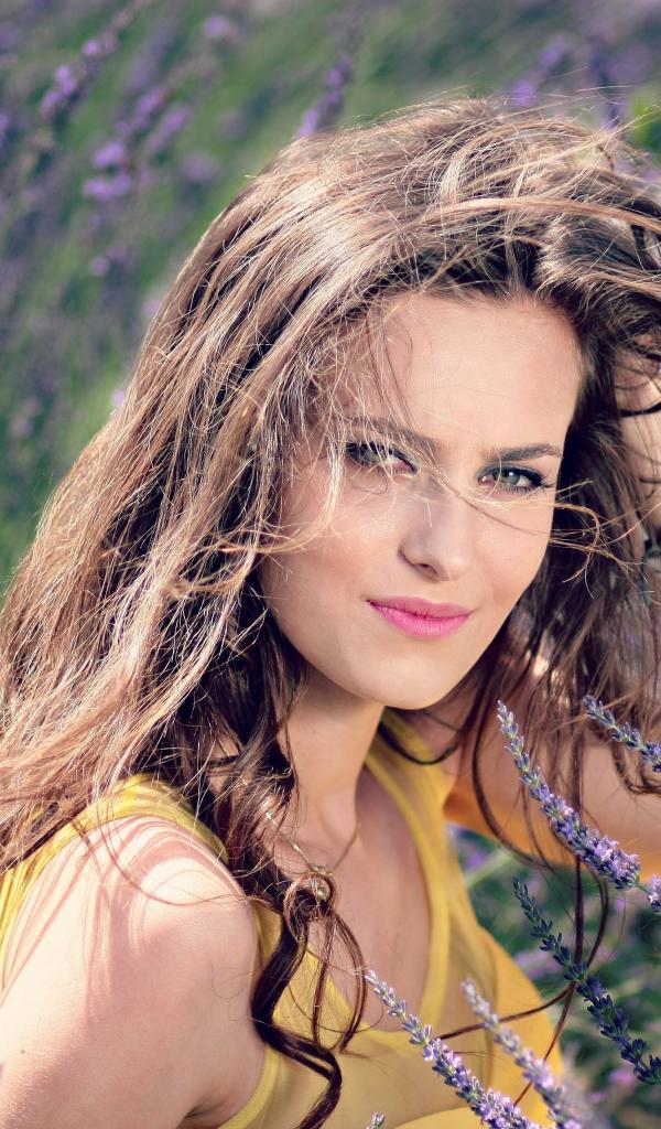 Wallpaper Beautiful brown-haired woman in lavender flowers