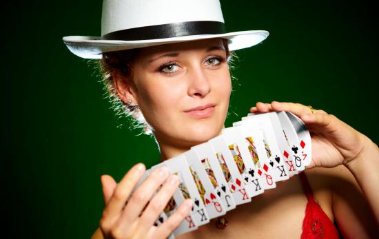 Wallpaper Young girl in a hat with cards in hands