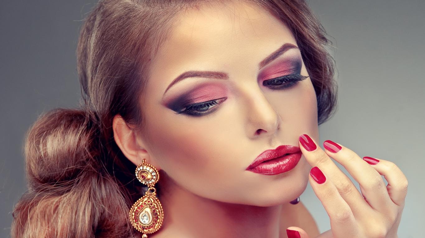 » Wallpaper Young girl in bright make-up and red nails