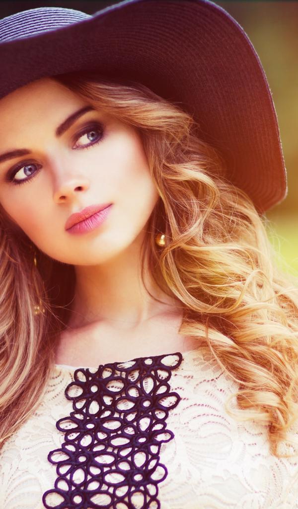 Wallpaper Young girl in a big black hat