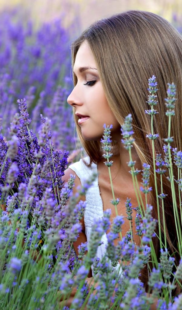 Wallpaper Delicate beautiful girl in lavender flowers
