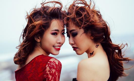 Wallpaper Two Asian girls with bright make-up