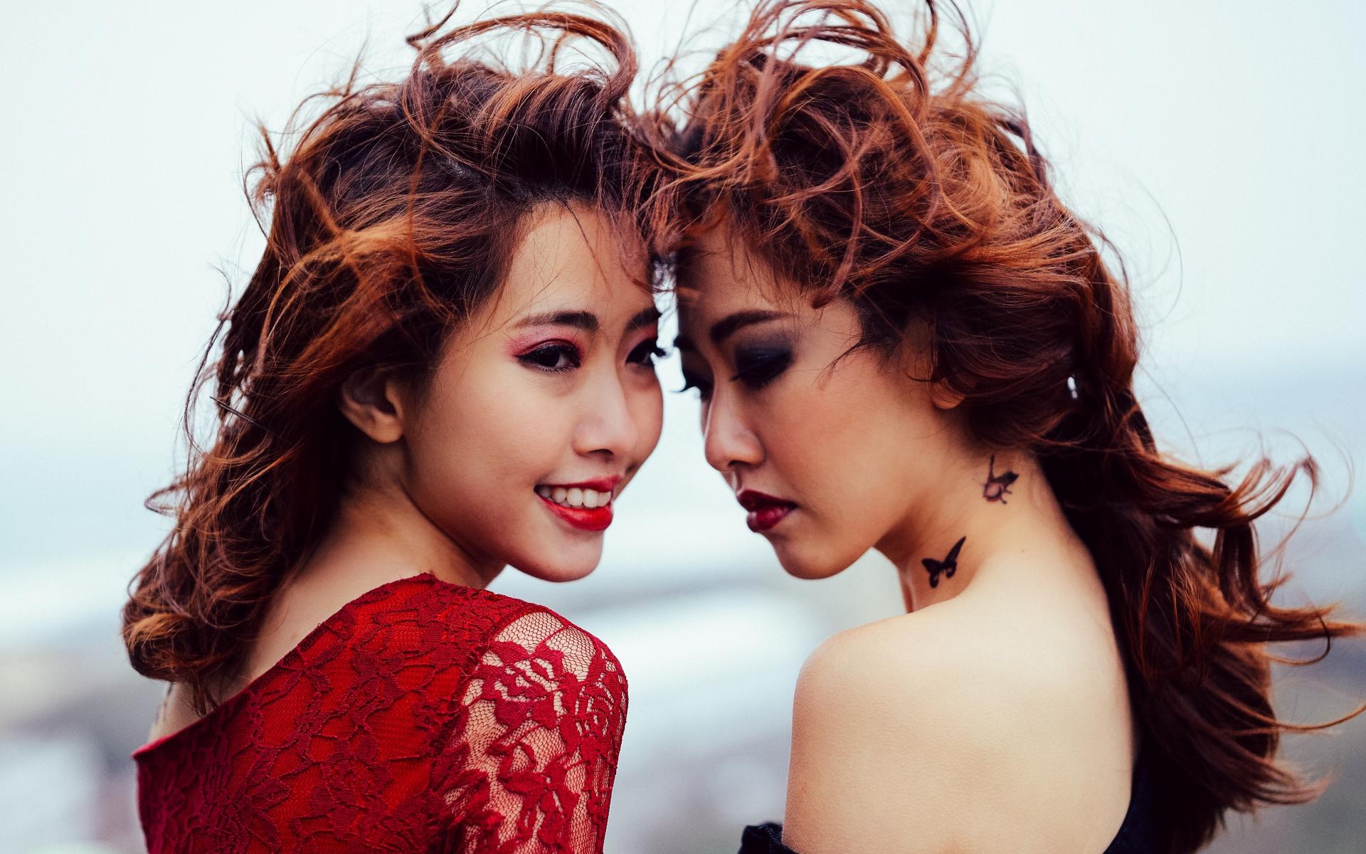 Wallpaper Two Asian girls with bright make-up