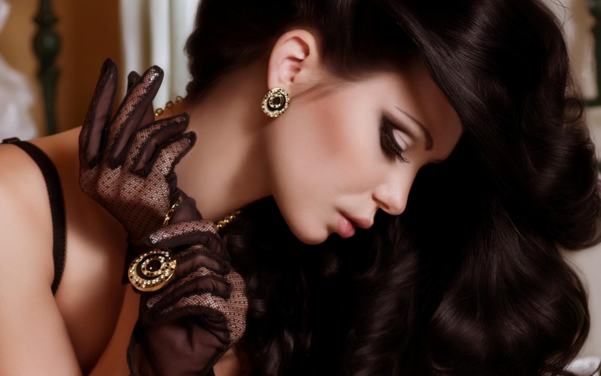 Wallpaper Stylish long-haired brunette with expensive ornaments