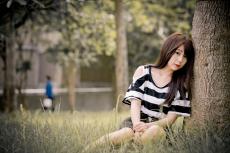Wallpaper Beautiful asian girl sitting in a white dress under a tree