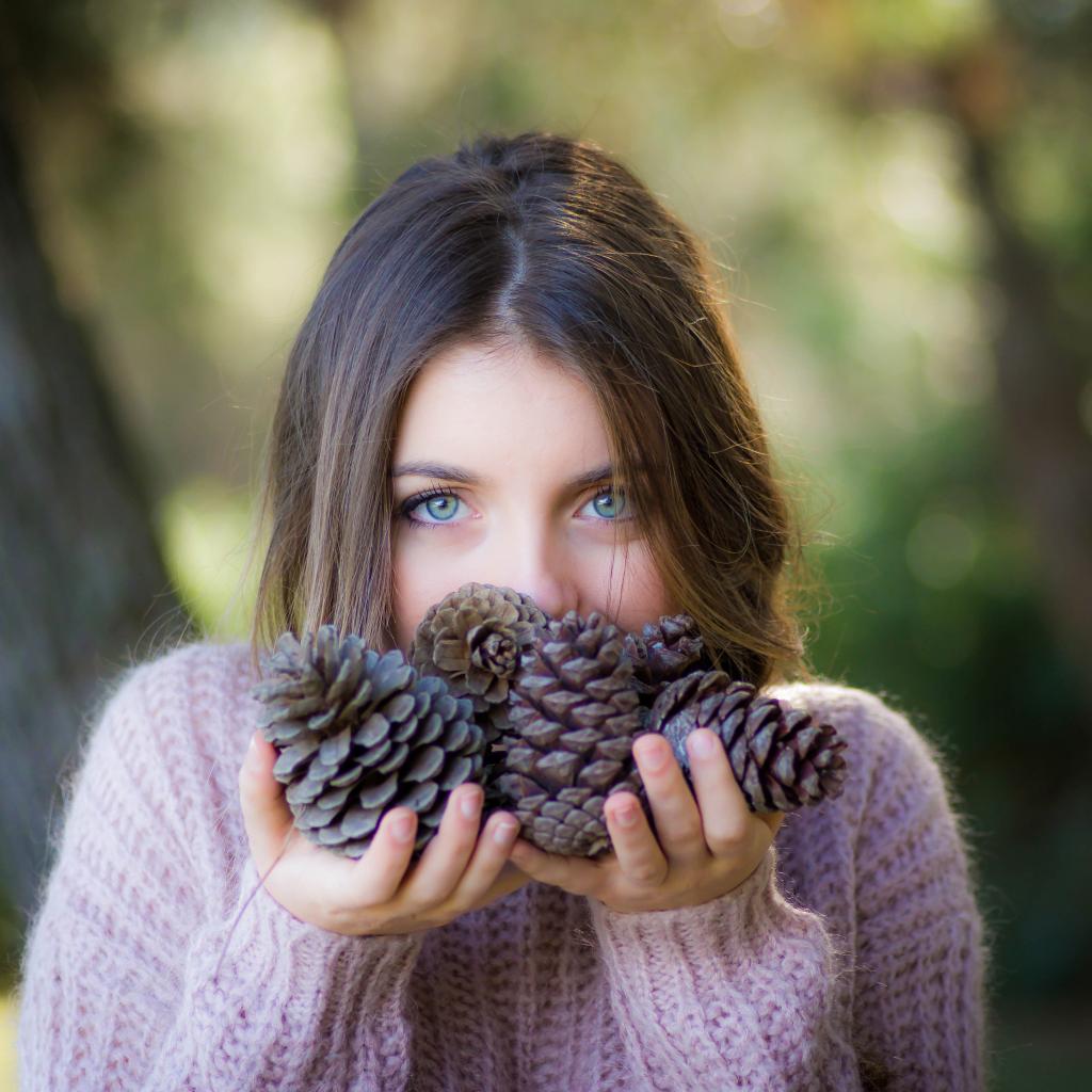 Wallpaper Young smiling girl with handbag and ice cream in hands