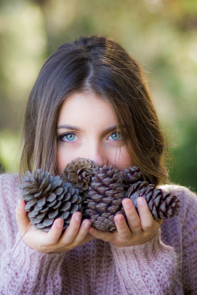 Wallpaper Young girl with cones in hands
