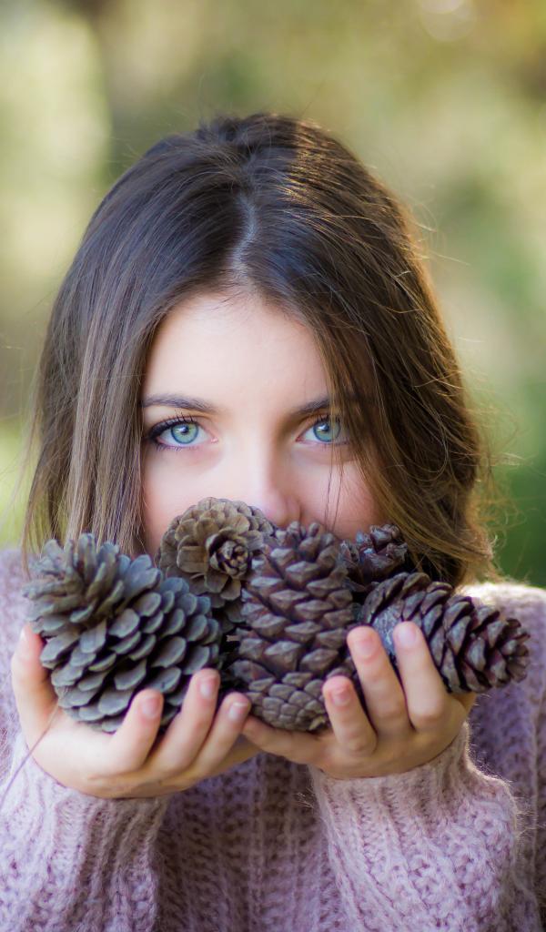 Wallpaper Young girl with cones in hands