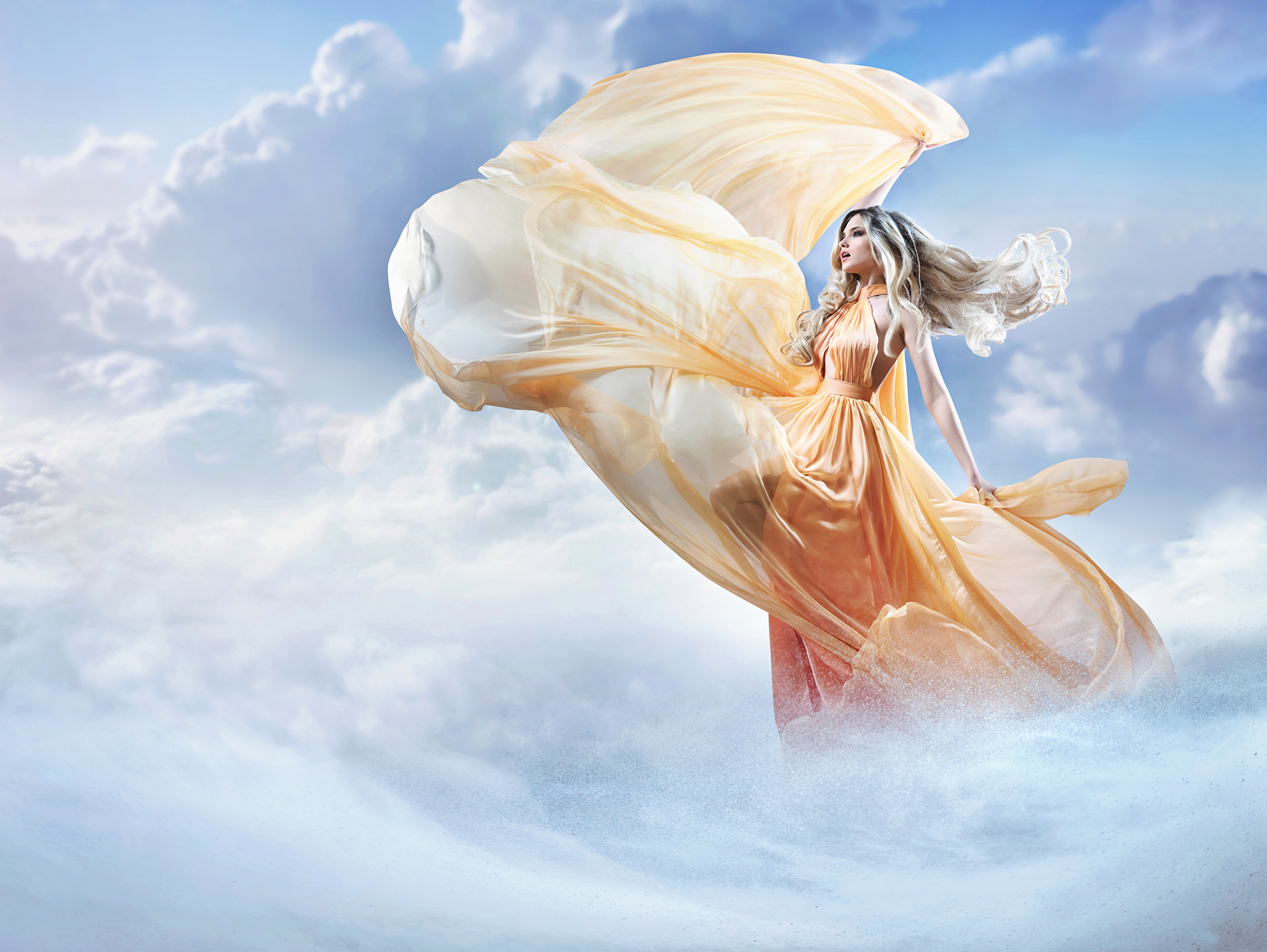 » Wallpaper Blonde in a beautiful dress on a cloud