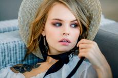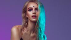Wallpaper Brutal blonde with a tattoo on her arm on a motorcycle
