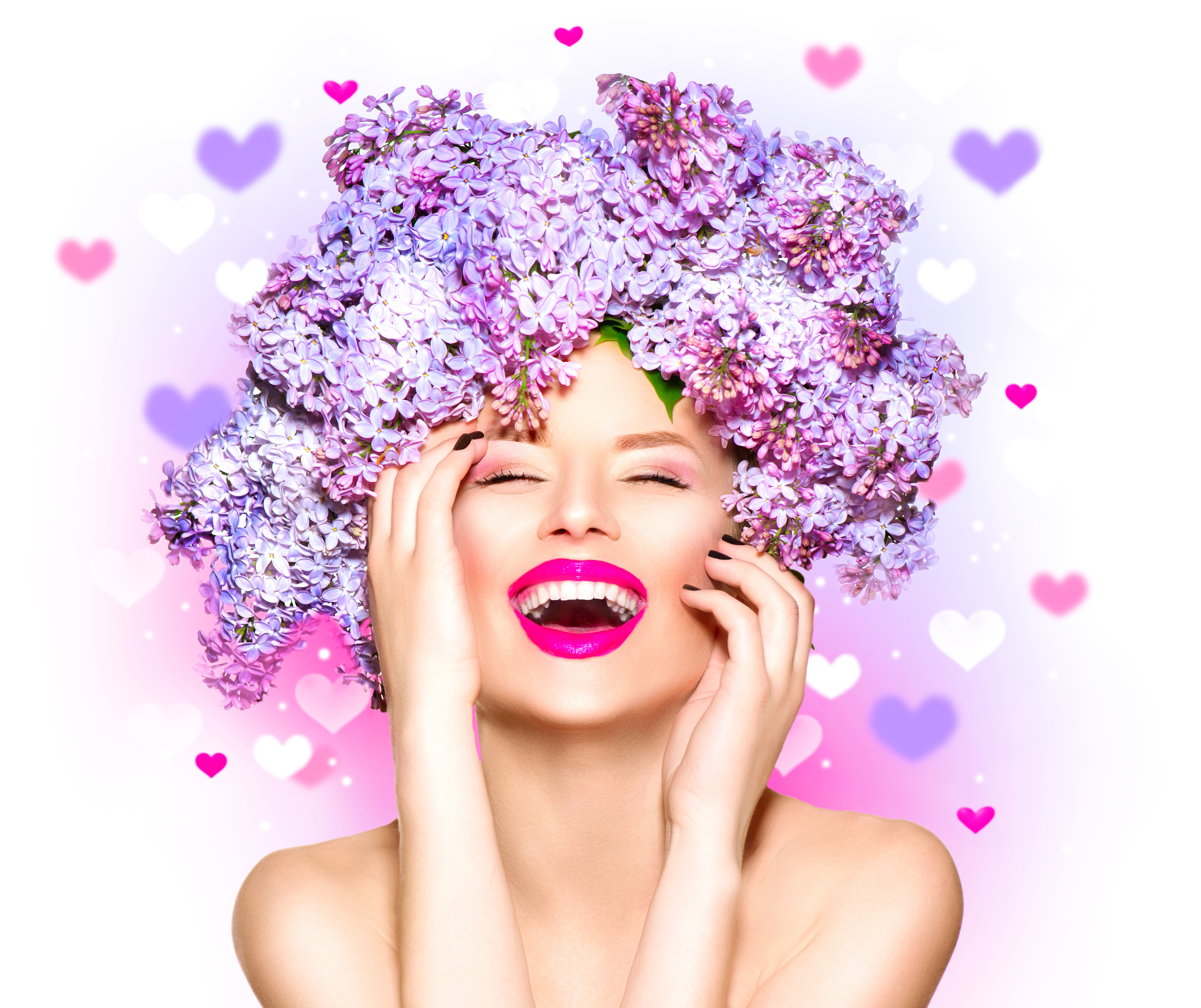 » Wallpaper Smiling girl with lilac flowers on her head