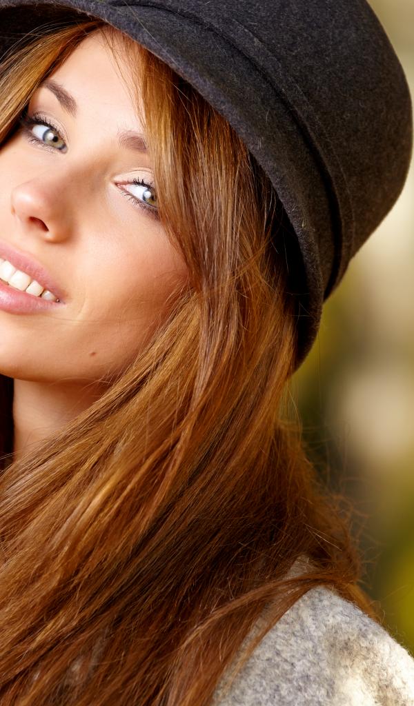 » Wallpaper Lovely brunette girl in a black hat
