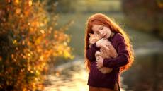 Wallpaper Beautiful red-haired girl with a garland in her hands