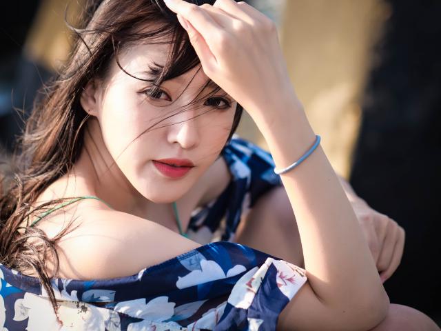 Wallpaper Beautiful Asian woman stands by a brick wall