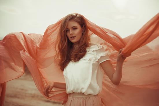 Wallpaper Beautiful red-haired girl with a cape