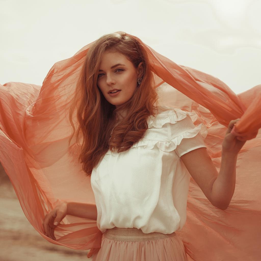 Wallpaper Beautiful red-haired girl with a cape
