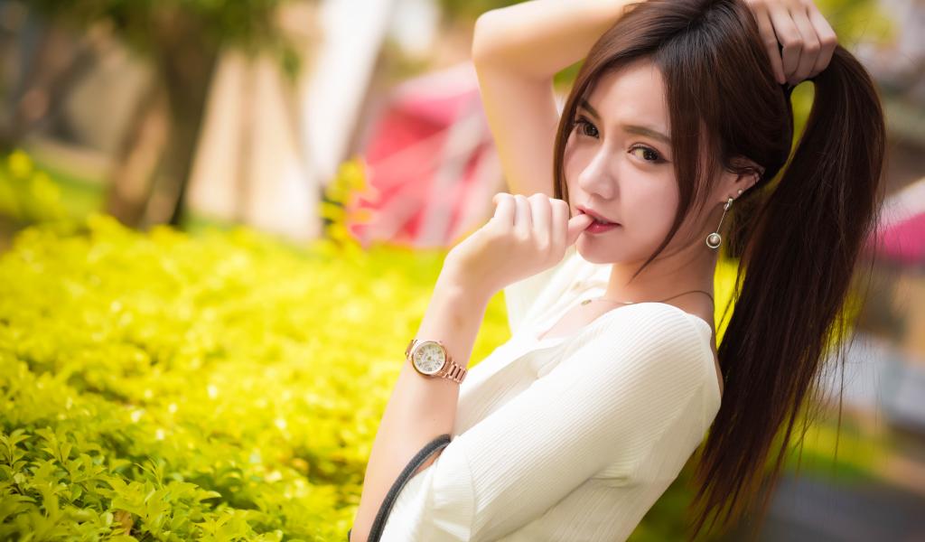 Wallpaper Beautiful asian girl with clock on hand