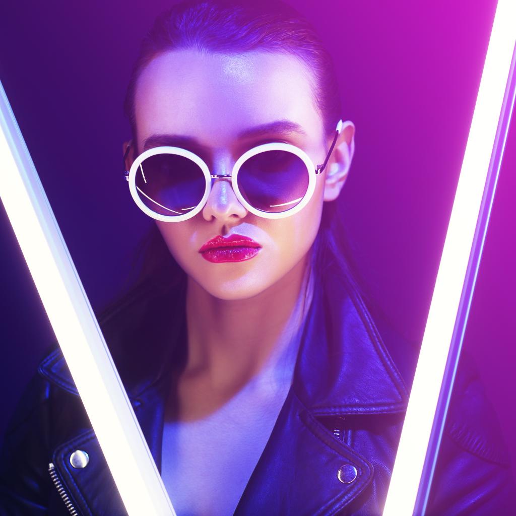 Wallpaper Brutal girl with glasses in neon light