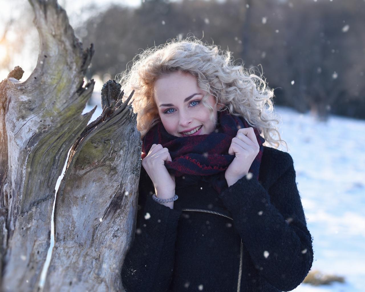 Wallpaper Blue-eyed blonde in a dry tree in winter