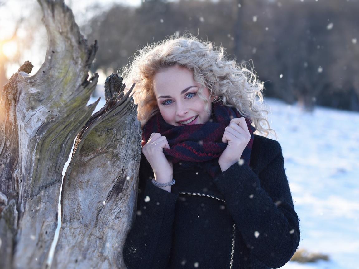 Wallpaper Blue-eyed blonde in a dry tree in winter