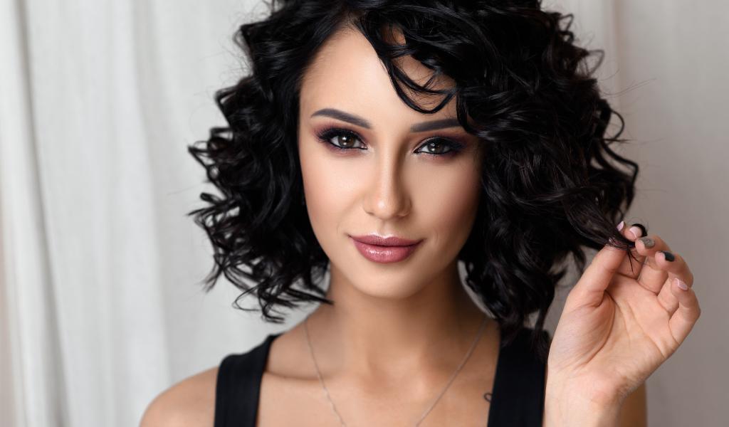 Wallpaper Spectacular brunette with bright makeup in a black dress