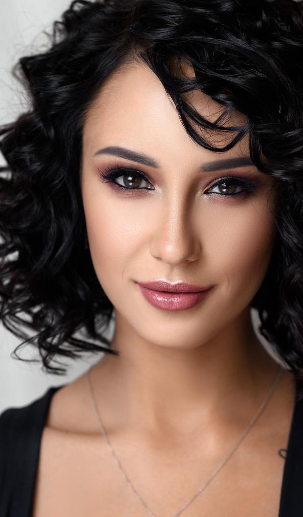 Wallpaper Spectacular brunette with bright makeup in a black dress