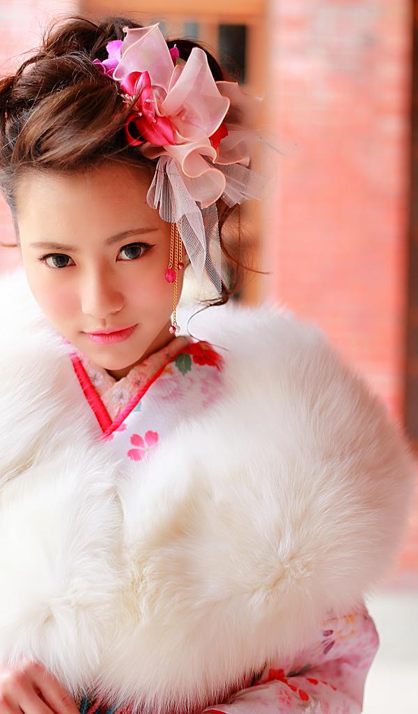 » Wallpaper Beautiful Asian girl in fur coat