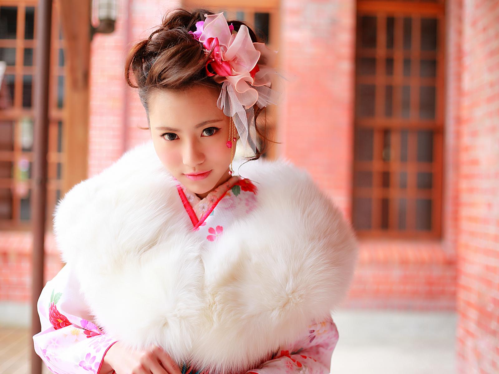 » Wallpaper Beautiful Asian girl in fur coat