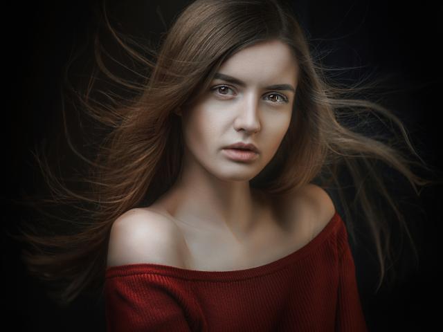 Wallpaper Long-haired beautiful girl in a red sweater