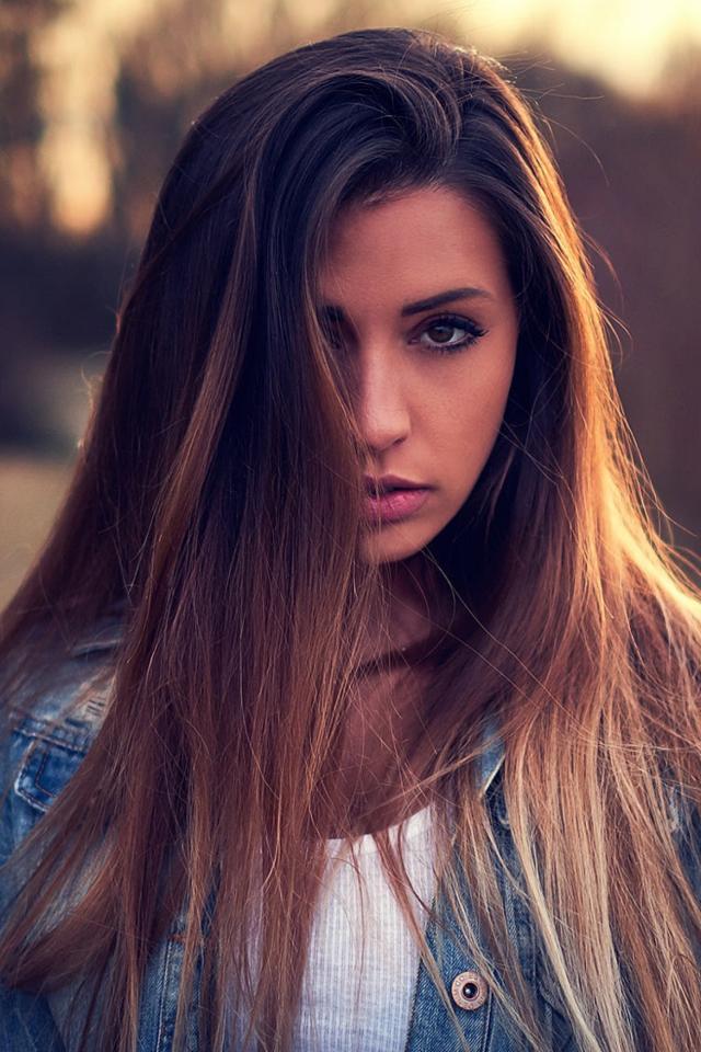Wallpaper Beautiful brunette with hair on face