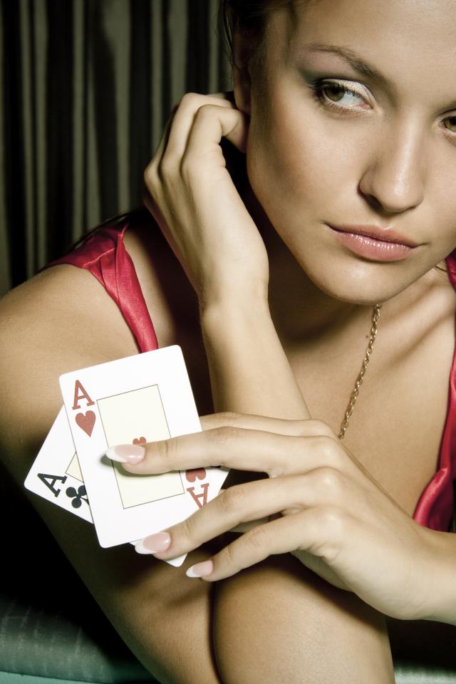 Wallpaper Young girl with two aces in her hand