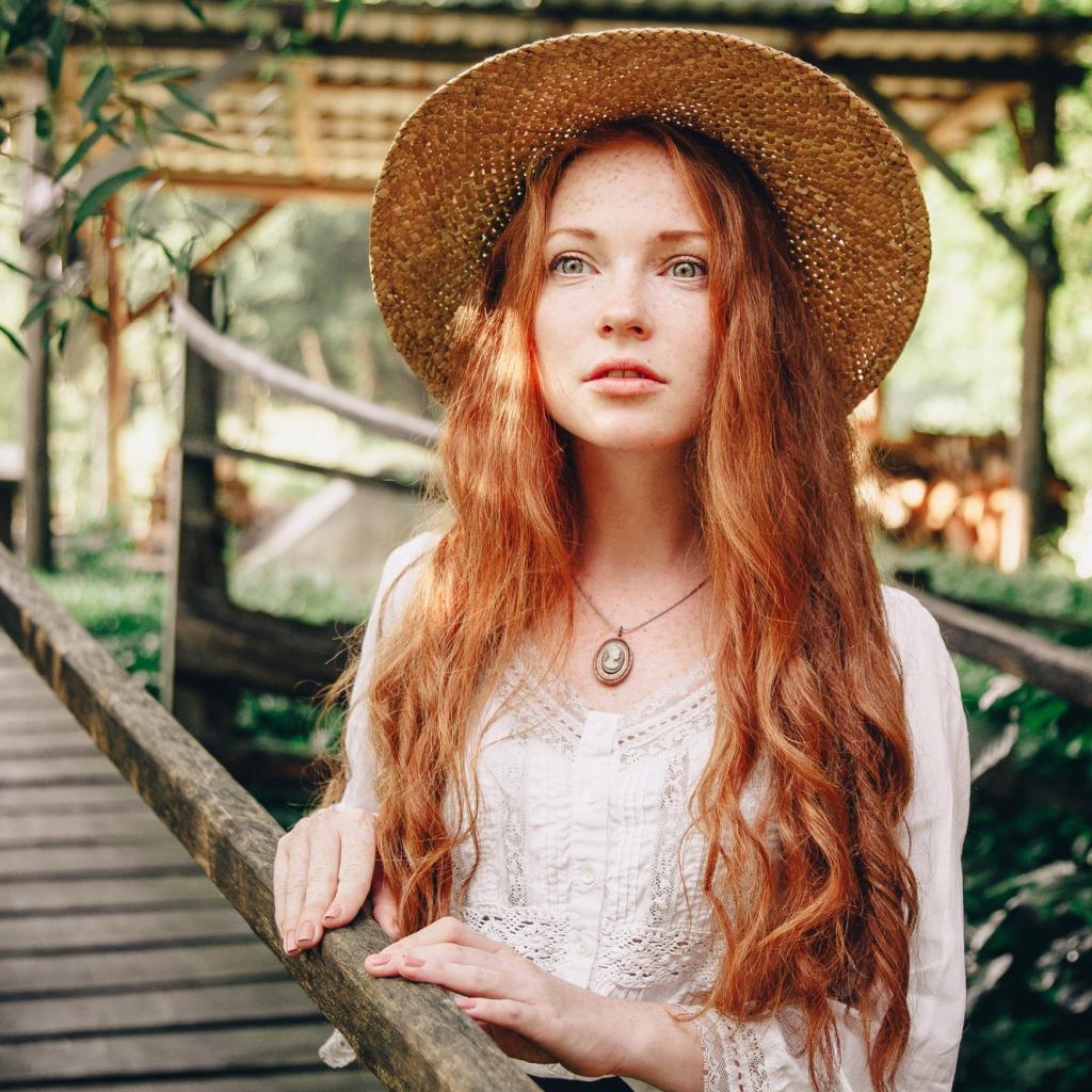 Wallpaper Beautiful red-haired girl in a straw hat