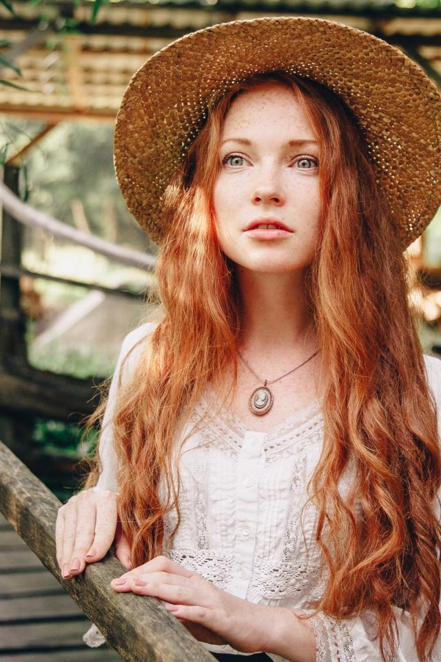 Wallpaper Beautiful red-haired girl in a straw hat