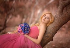 Wallpaper Beautiful girl in a dress with a bouquet of lilacs