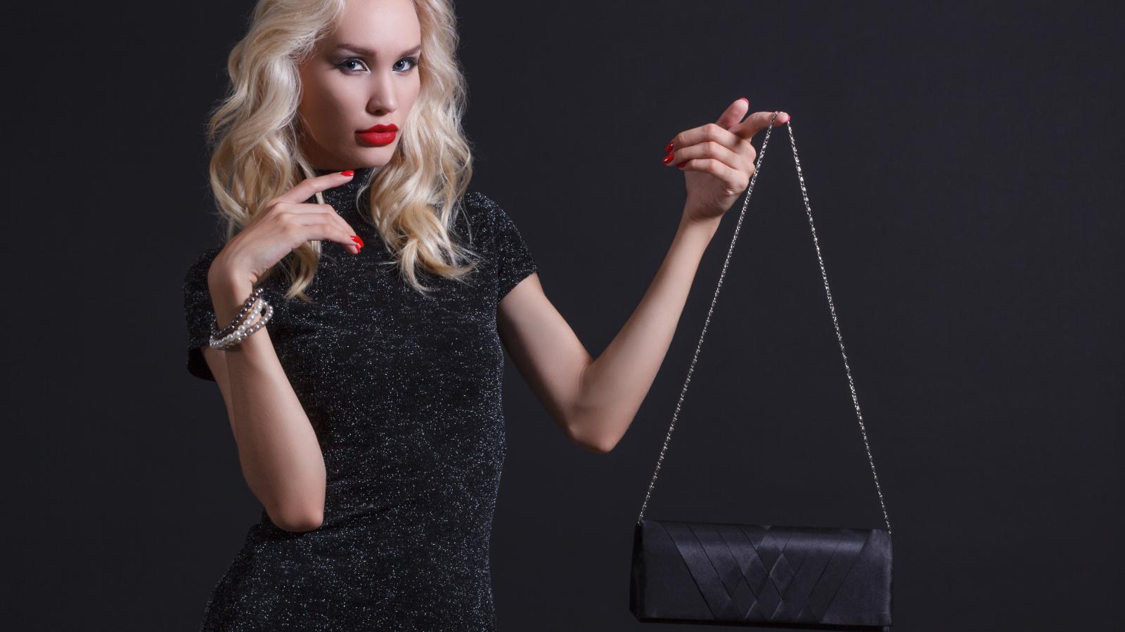 Wallpaper Stylish blonde with a black handbag