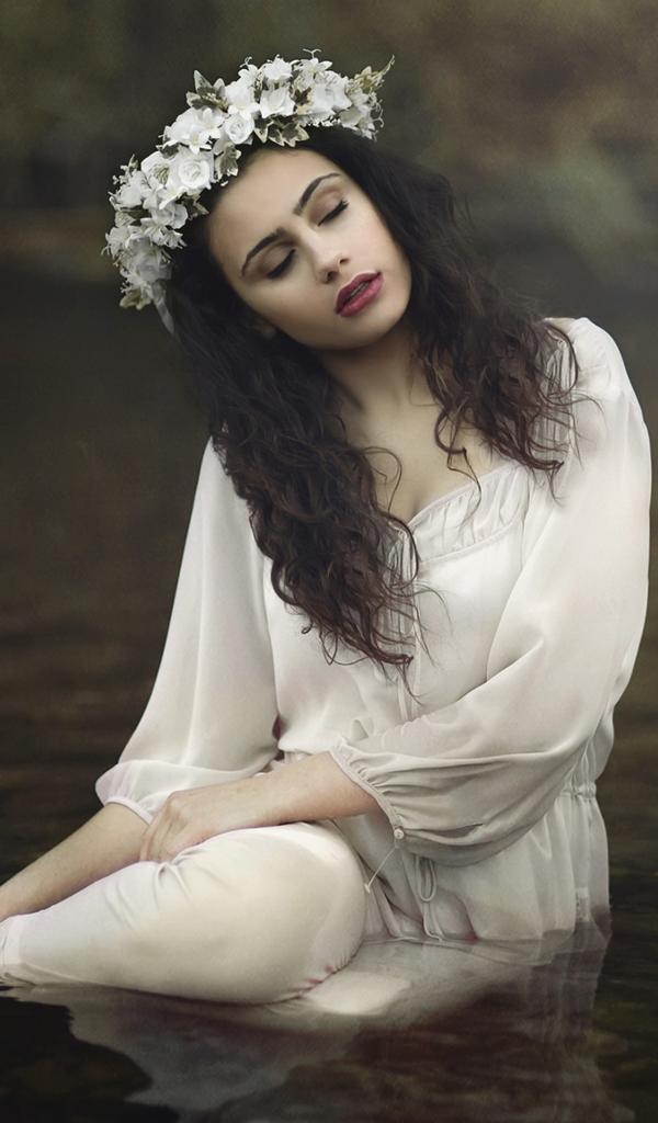 Wallpaper Girl in a beautiful white dress in the water