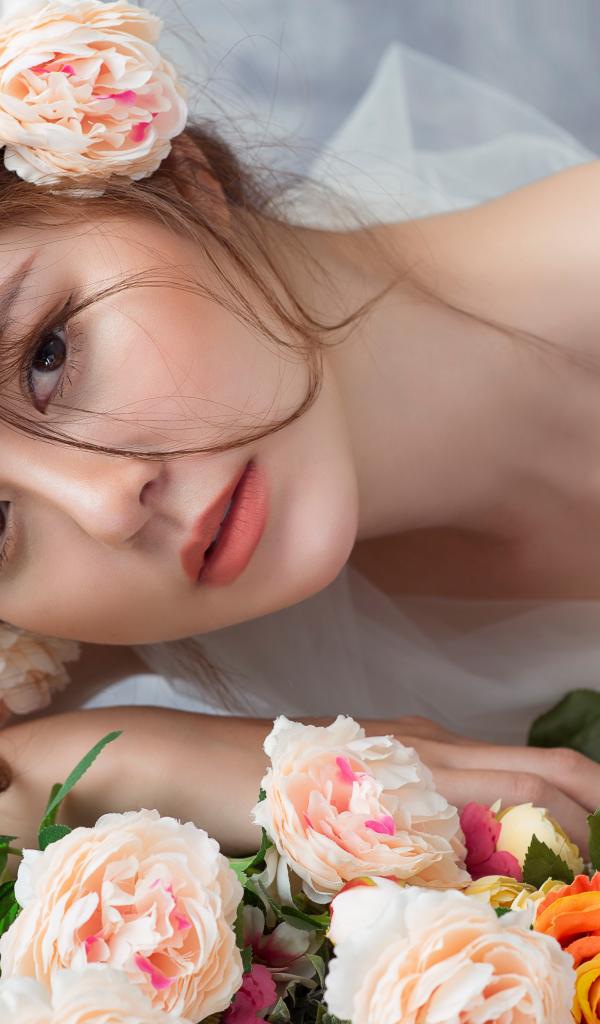 Wallpaper Beautiful asian girl with flowers in her hair