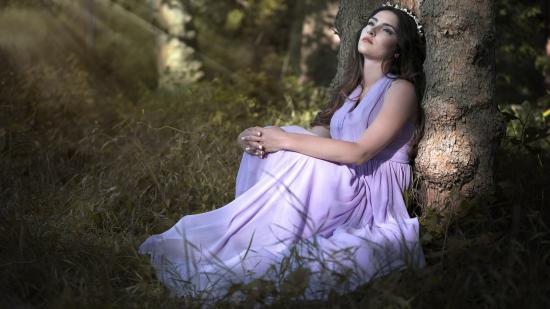 Wallpaper A girl in a beautiful dress under a tree