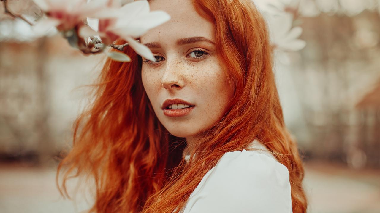 Wallpaper Beautiful red-haired girl with freckles on her face