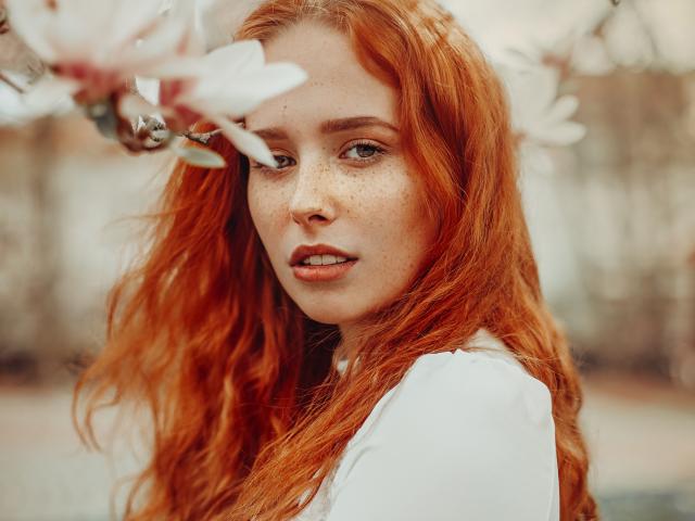 Wallpaper Beautiful red-haired girl with freckles on her face