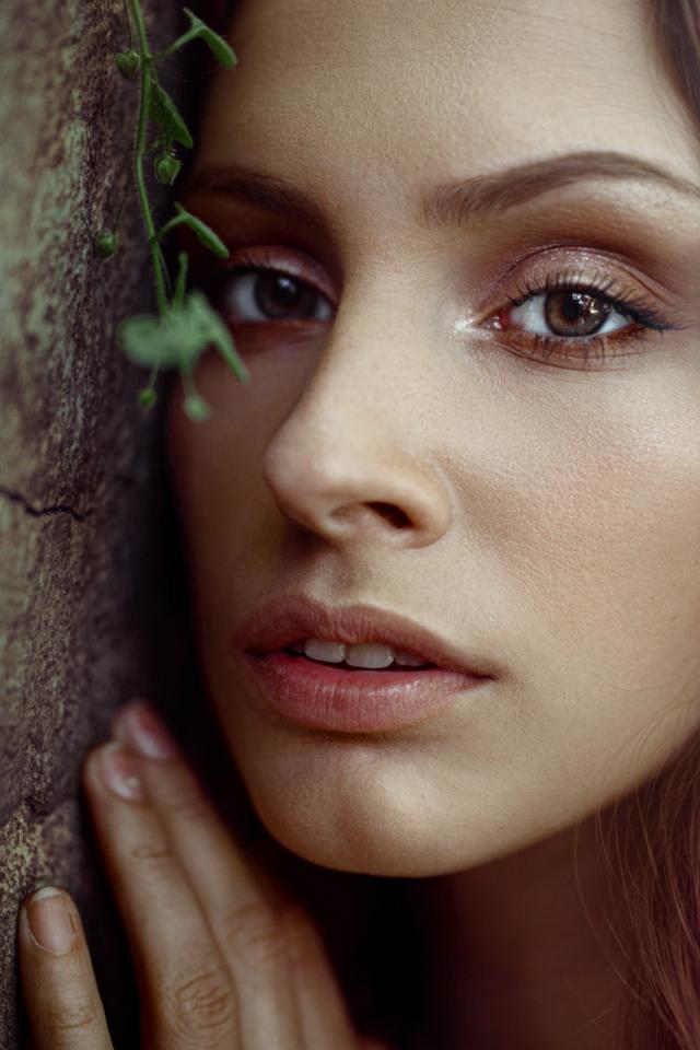 Wallpaper Beautiful tender brown-haired woman near the wall