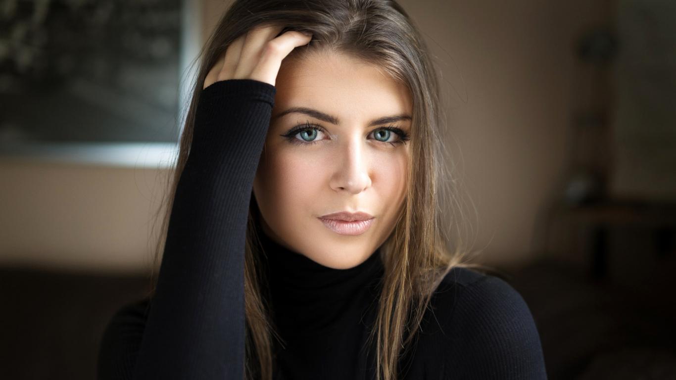 Wallpaper Beautiful brown-haired woman in a black sweater