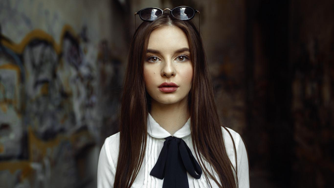 Wallpaper Young beautiful girl with glasses on her head