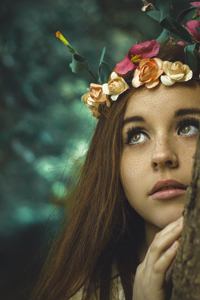 Wallpaper Girl with a wreath on her head near a tree