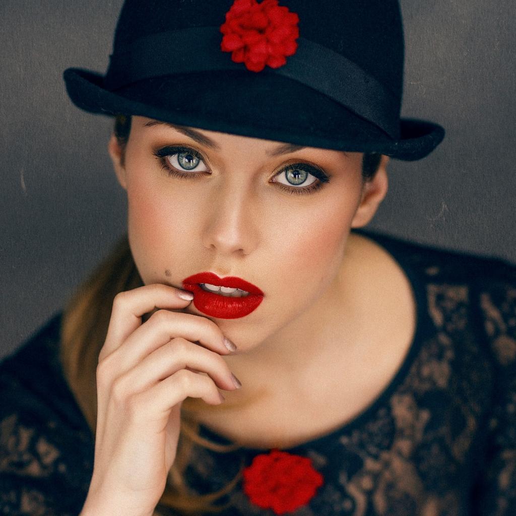 Wallpaper Stylish girl with bright make-up in a black hat