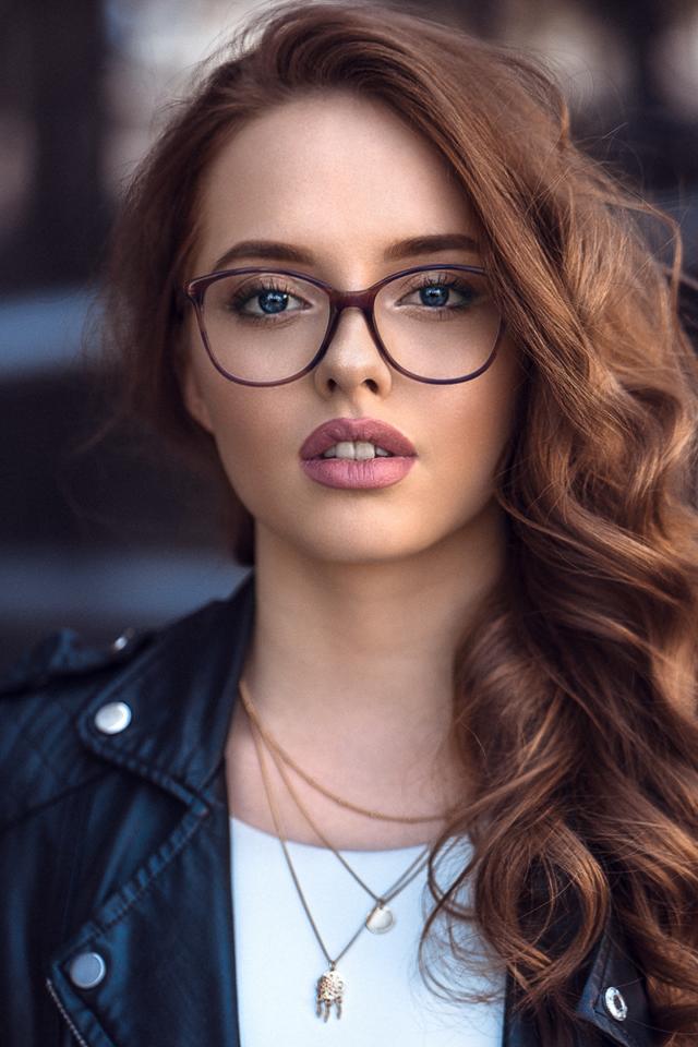 Wallpaper Girl in a black jacket with glasses