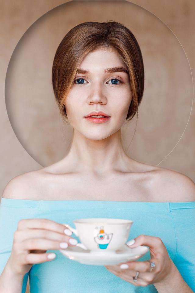 Wallpaper Delicate blue-eyed girl with a cup
