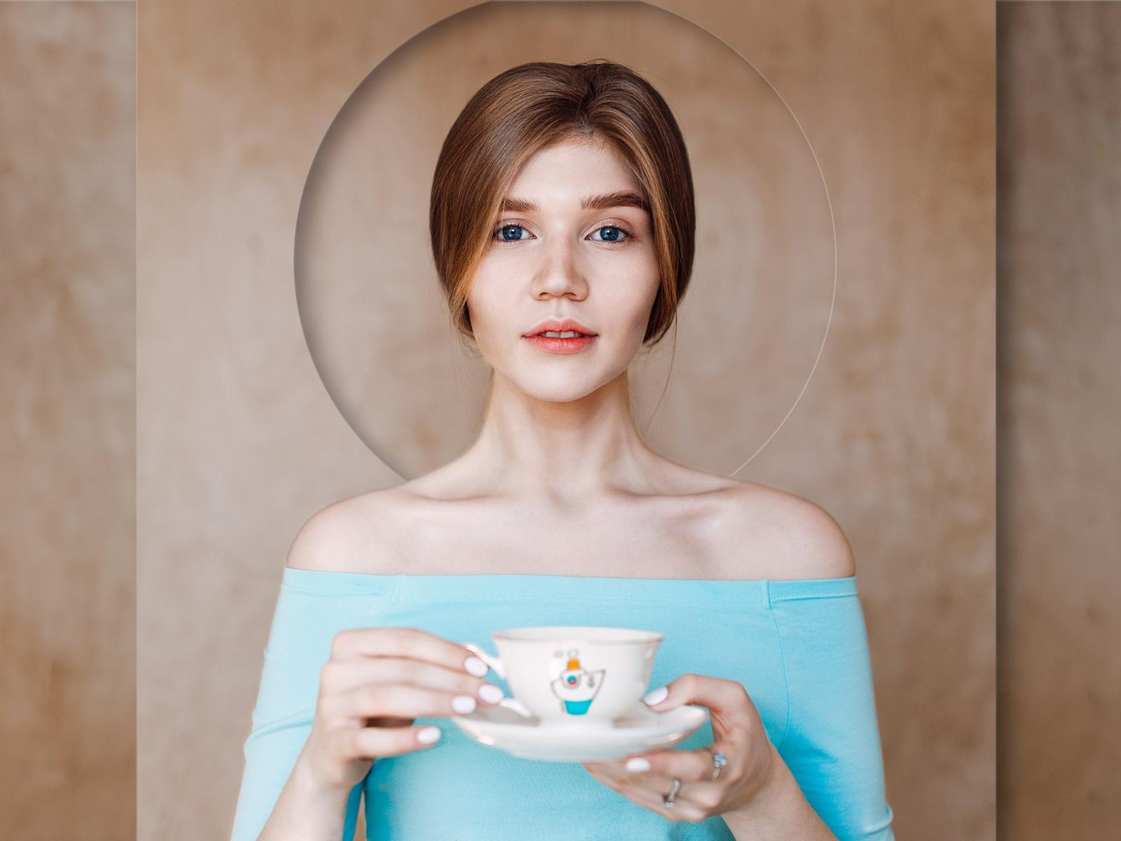 Wallpaper Delicate blue-eyed girl with a cup