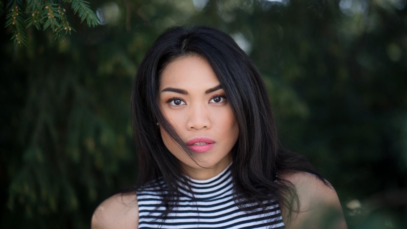 Wallpaper Beautiful blue-eyed girl with long black hair